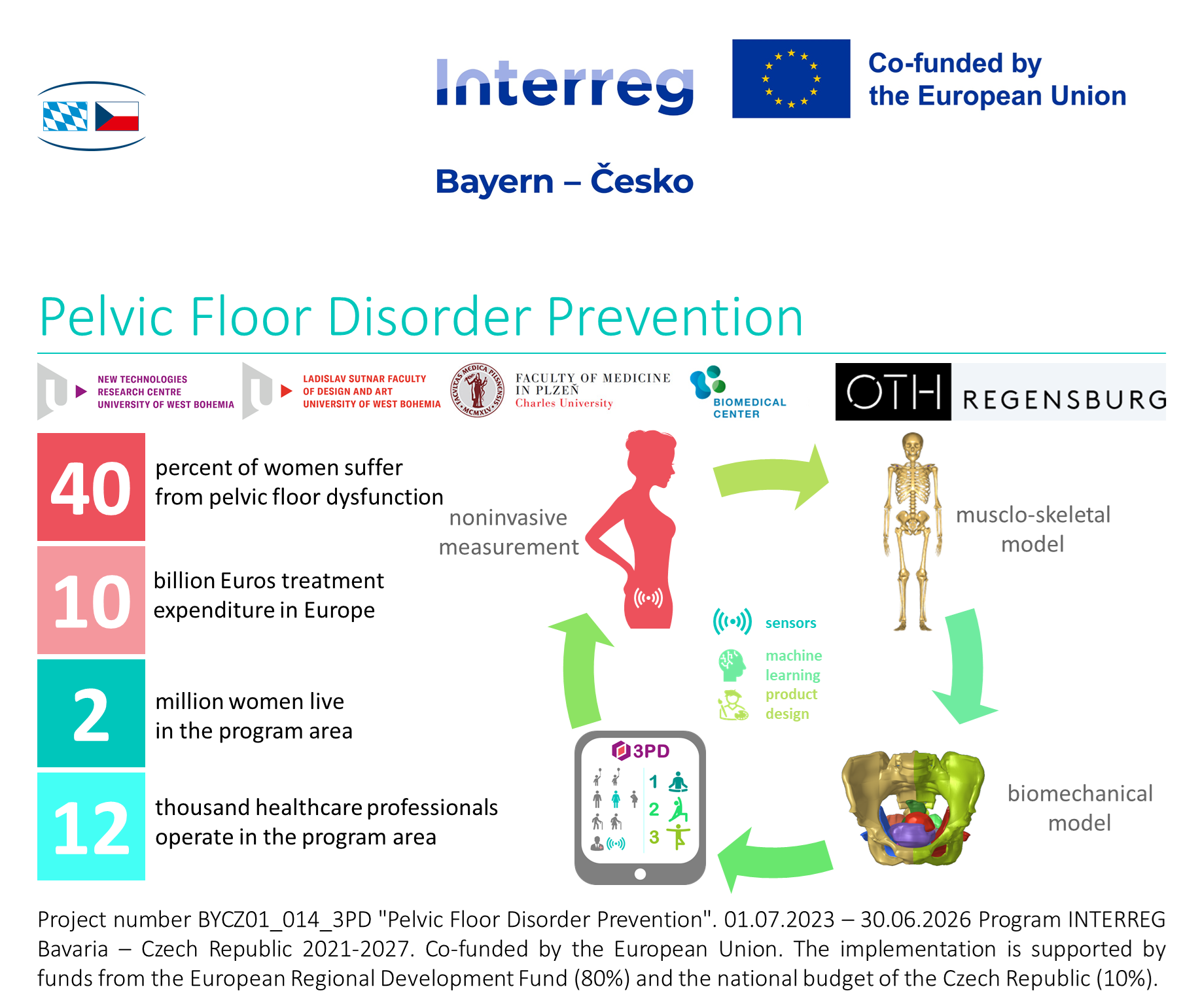 Programová oblast trpí nerovnoměrným rozložením lékařské a terapeutické péče soustředěné do velkých měst. Navrhovaný projekt řeší výzvu vyplývající ze situace v příhraničním regionu zvýšením informovanosti u cílových skupin a rozvojem personalizované a účinné prevence poruch pánevního dna.